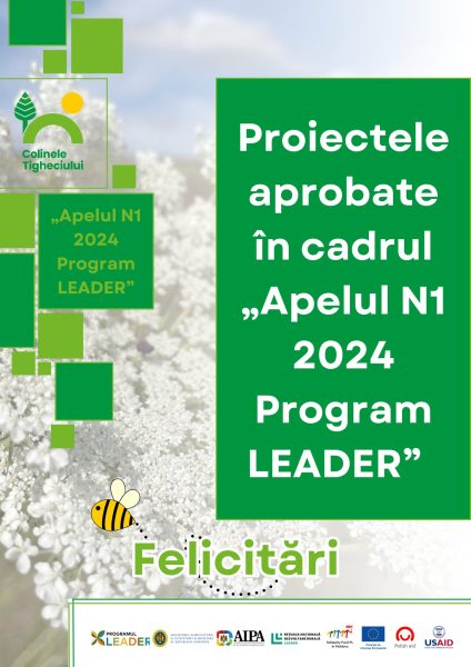 Proiectele se vor realiza în cadrul „Apelului Nr.1/2024 Program LEADER” al GAL „Colinele Tigheciului”, finanțate de AIPA.