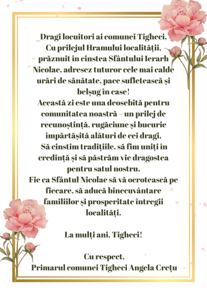 Mesaj de felicitare Hramul localității